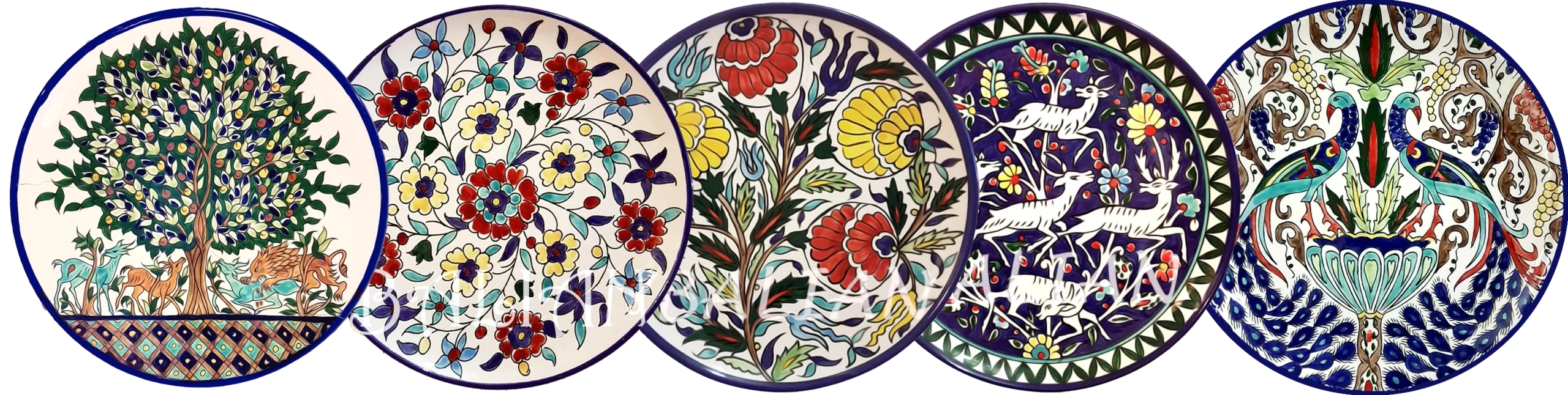 The Balian Studio of Jerusalem has been producing hand painted decorative plates and collector plates for more than 100 years now. We manufacture our own plates from the best white firing raw clay imported from Italy. After bisque firing them in ceramic kilns to a temperature of more than 1000 Centigrade , the decorative plates are hand painted and then fired again to about 1000 Centigrade. We use European lead free glazes for food safety. Our decorative plates can be used both as a functional dinner plate item and also decorative ,,,such as hanging on kitchen walls etc.
