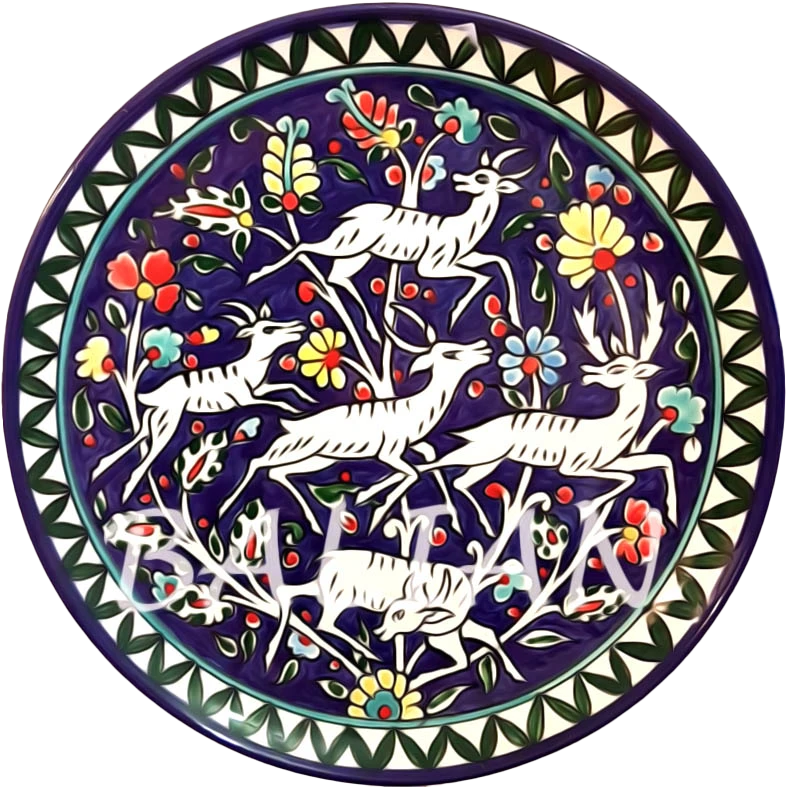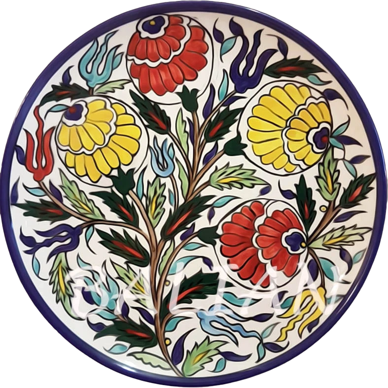 For over a century, The Balian Studio of Jerusalem has crafted exquisite hand-painted decorative and collector plates using premium Italian white firing raw clay. Fired twice at temperatures exceeding 1000°C and adorned with European lead-free glazes for food safety, our plates are both functional and decorative, suitable for use in dining and as kitchen decor. Explore various sizes available on our website. Designed by the late Marie Balian, our plates continue a rich tradition of artistry and heritage, carrying on her legacy of creativity and excellence.